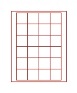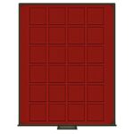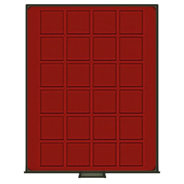 - Dark red insert with 24 square compartments.