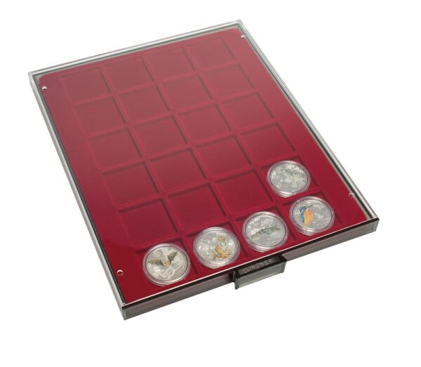 COIN BOX STANDARD WITH 20 ROUND COMPARTMENTS FOR COIN CAPSULES WITH AN EXTERNAL Ø OF 46 MM AND FOR SMALL LINDNER COIN BOX-CAPSULES