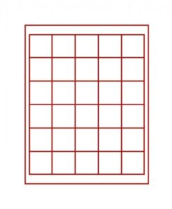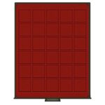 - Dark red insert with 30 square compartments.