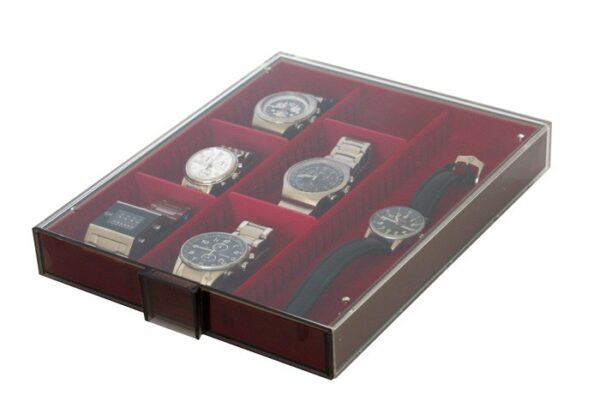 COLLECTION BOX SMOKED GLASS WITH 3 COMPARTMENTS AND 8 MOVABLE DIVIDERS FOR INDIVIDUAL CONFIGURATION 220 X 280 X 29 MM