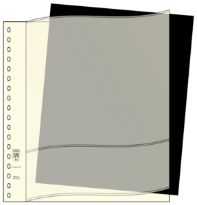 The write-up sheet is placed between the plastic film sleeve and the album page. It can be replaced or exchanged at any time. The black sheets are designed for collectors who prefer to have a black background behind the stamps. The contrast makes perforations, colours, and the beauty of the featured stamps stand out. The white blank sheets can be used to add any text, pictures, or illustrations to the sheet.