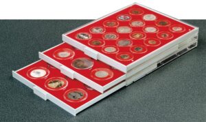 COIN BOX STANDARD WITH 20 ROUND COMPARTMENTS FOR COIN CAPSULES WITH AN EXTERNAL Ø OF 46 MM AND FOR SMALL LINDNER COIN BOX-CAPSULES