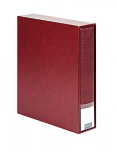 Our crystal clear coin pages provide neat and safe storage of your coin collection. Simply remove the plastic strip from the page and insert the coins in the individual compartments. Once it is filled, insert the strip back into the page – that’s it! The pages are easily removed, added, or changed. The coin pages are separated by black interleaving pages which provide a nice background for the coins. The sturdy construction and the quality materials selected for this ring binder guarantee many years of use. The padded leatherette cover has a 4-ring mechanism and is also available with a matching slipcase. A large, clear index window on the spine allows you to insert a description for easy identification of the contents. The sturdy slipcase protects the album and its contents and lets it sit safely on your shelf or cupboard.